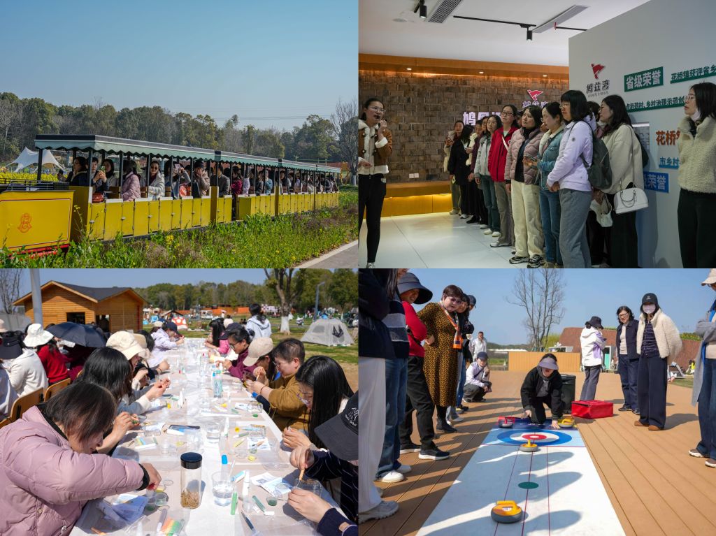 随后,活动进入手工制作与团建拓展环节。在手工体验环节,大家围坐在一起,静心创作、交流心得,在指尖艺术中感受传统文化与生活美学的魅力,一件件精致的手工作品承载着节日的喜悦与祝福。团建拓展环节趣味十足,老师们默契配合、奋勇争先,欢声笑语回荡在鸠兹湾的美景之中,充分展现了新时代女教职工昂扬向上、团结奋进的精神风貌。