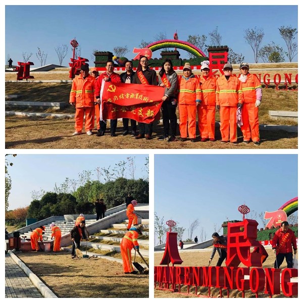 为深入开展“不忘初心、牢记使命”主题教育,牢记习近平总书记 “绿水青山就是金山银山”的讲话精神,11月22日上午,工会党支部组织全体党员来到十里江湾公园,与芜湖市弋江区市容局环卫所的环卫工人一起开展了环保志愿服务暨主题党日活动,进行垃圾分类,清捡树叶、清扫白色垃圾及动物粪便等方式,参与了生态文明建设,携手行动,共建天蓝、地绿、水清的美丽江城——芜湖。